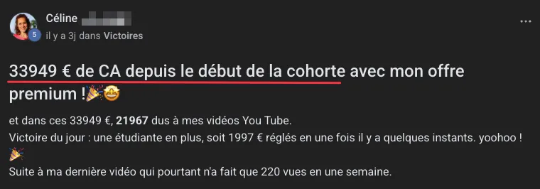 J’ai généré 34 000 euros de chiffre d’affaires en 10 semaines grâce à l'accompagnement.